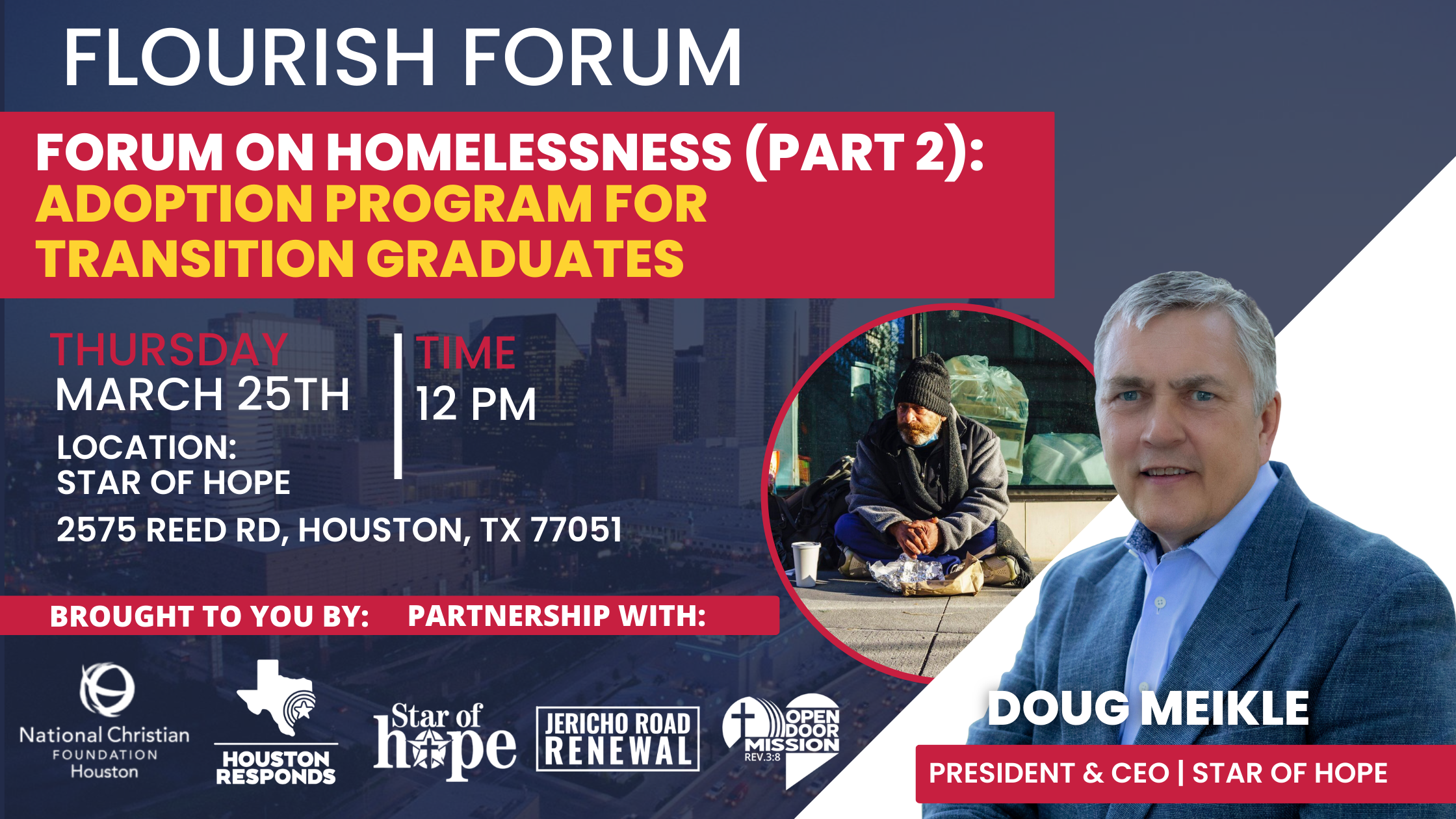 Last September Houston Responds hosted a Flourish Forum on homelessness and housing, keynoted by the Executive Directors of Star of Hope and Open Door Mission.